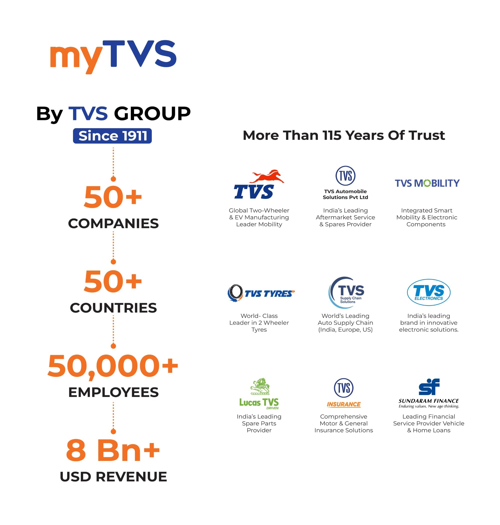 myTVS is India’s No.1 Car Accessories brand. The company is a 100% subsidiary of TVS Automobile Solutions Pvt. Ltd., Chennai part of 107 years old, $8.5 billion trusted TVS Group.