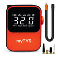 Stay ready for any journey with the myTVS Cordless Tyre Inflator, your reliable portable air compressor for all vehicles. Built with a 150 PSI high-pressure metal motor, this inflator delivers fast and accurate inflation for car, bike, and cycle tyres. The auto stop function ensures precise air pressure every time, while the 4000mAh rechargeable battery also works as a power bank to charge your phone or gadgets on the go. Equipped with a bright LED light and SOS mode, it ensures safety during night or roadside emergencies. Compact, durable, and multi-purpose – a must-have digital tyre inflator for your car and travel kit.